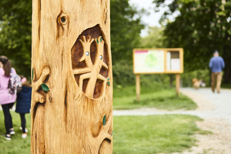 Further round the trail there is another kid’s play area suitable for slightly bigger children, with den building in the woods close by.